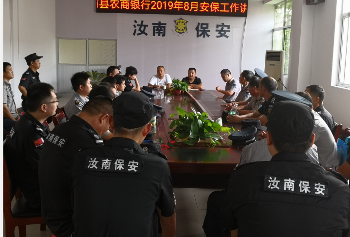 2019年8月1日、2日、3日,汝南分公司在公司会议室举行7月份农商银行安保工作讲评会。会上,汝南分公司副经理乔运强和人防部主任秦志华分别对大堂经理和保安员宣读了7月份工作中存在的问题,并指出7月份的工作较前几个月有了不小的进步,很多平时容易出现的问题和缺点,在7月份都有了很大改观。但是依然存在进步的空间,希望各位大堂经理和保安员们再接再厉,用优质的服务更好地为客户服务,为汝南分公司争光添彩。