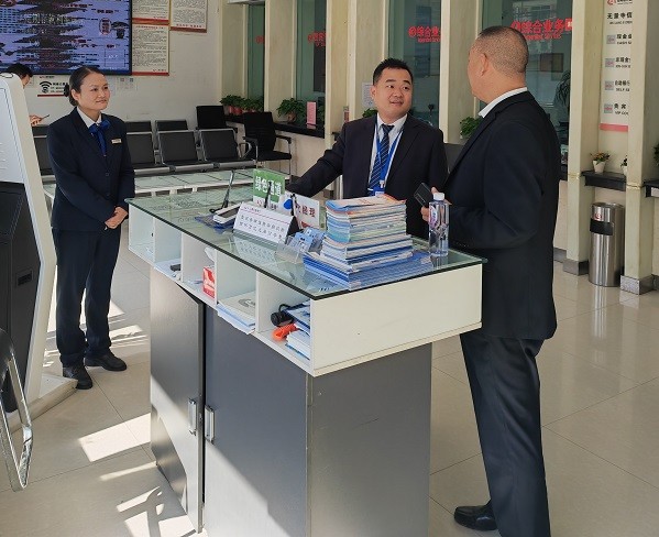 11月8日上午,副经理苑占军一行驻对黄埠镇、无量寺乡农商银行大堂经理在位情况进行了突击检查,检查效果非常满意。苑副经理并于农商行负责人就大堂经理、保安员工作情况进行了深入交流,及时掌握了他们的工作、生活、思想状况,为我们今后如何管理提供了第一手资料,也拉近了与各行负责人的距离。