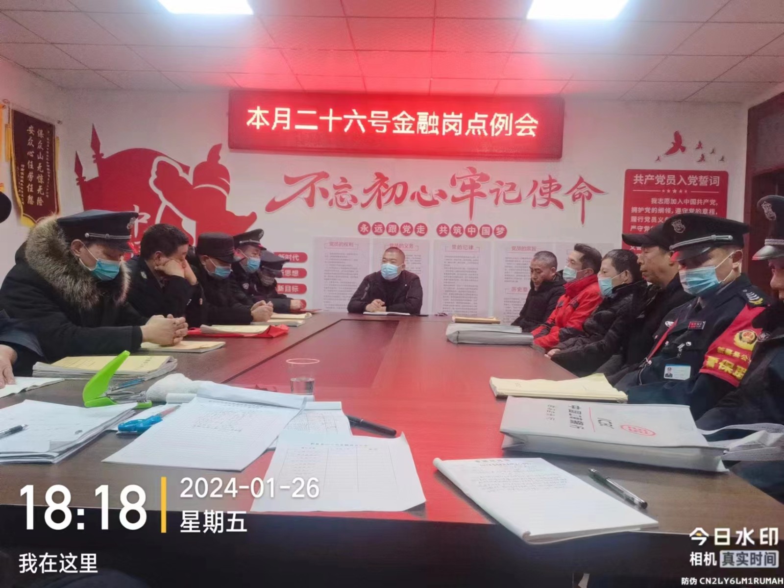 2024年元月26日晚上,县分公司在三楼会议室召开了金融岗点例会,会上车经理认真听取了各位队员工作情况的汇报,逐个检查各岗点工作日志的规范填写。最后在会上车经理再次强调,春节将至,天气寒冷,各位队员一定要落实好安全工作,把安全放在第一位,对存在有安全隐患的及时排查清楚,确保自己及用人单位的安全。