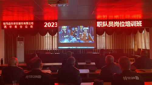 培训中,利用电脑投影让队员观看了岗上存在的问题和消防案(事)件的视频,系统讲解了保安职责、权利、职业道德、礼仪规范和保安员专业技能、安全技术防范、消防安全知识、着装规范及案(事)件剖析等。军事技能重点训练了立正、稍息、跨立、停止间转法、行进与立定、交接班礼仪、敬礼、队形、集合解散、出列入列等。