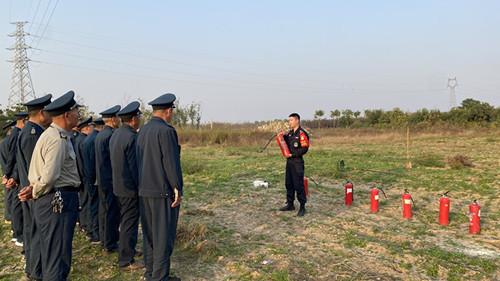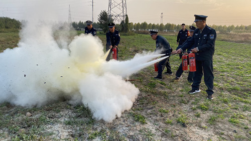 10月28日下午,98彩票网西平县分公司,派驻西平植物园保安队员联合客户单位,在植物园南大门东空地上,开展消防安全应急演练,旨在通过消防灭火实操演习,切实提高客户单位工作人员和保安队员,应对火灾事故的应急水平。来自植物园领导和部分工作人员及驻地保安20多人参加此次演练。