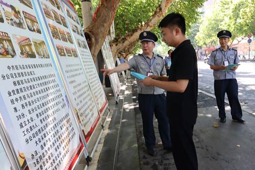 早8点,西平县分公司组织公司机关全体人员,着制服,拉着宣传版面,宣传彩页等到街面进行宣传活动。县政法委副书记李会平、县公安局副局长郭国华、巡特警大队副大队长刘波等领导在分公司支部书记高合群、经理高全中等领导陪同下参观公司的宣传活动,同时,对前来咨询观看的群众进行耐心的讲解。宣传活动展示了西平保安的形象及风采。活动达到预期效果。