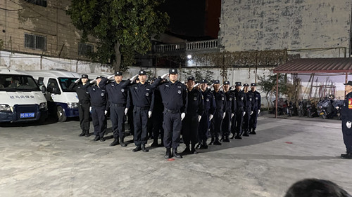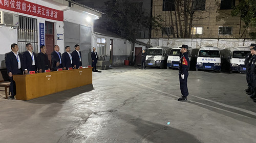押运大队院内灯火通明,干净整洁,队员们着装整齐、士气高昂,迈着矫健的步伐,喊着铿锵有力的口号跑进考核现场,首先汇报队列及三大步法演练,接着表演擒敌拳术及配套动作,最后两个防抢演练把汇报表演达到高潮,得到考核组高度认可。