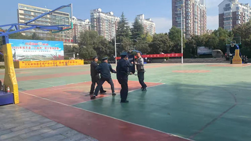 在夯实队列基础的同时,本次练兵更侧重于多样化实战技能的锤炼。公司精心组织了多项贴近实际工作的专项演练:如门岗礼仪与规范交接演练,展示了队员们文明执勤、规范专业的窗口形象;针对学校门口突发情况的防暴力犯罪小单元作战演练;检验和提升了队员们快速反应、协同配合、有效控制局面的应急处置能力。押运大队则重点进行了擒敌拳术及配套动作训练;虎虎生风的拳法、精准有力的制敌技巧,彰显了押运队员过硬的军事技能和守护金融安全的决心。此外,道路防抢演练与营业室门口防抢演练;则模拟了可能发生的突发险情,进一步强化了队员们的安全防范意识和实战对抗能力。