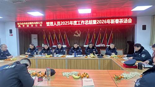 为全面总结回顾2025年度工作成果,谋划部署2026年重点任务,并喜迎新春佳节,西平分公司于元月9日晚6时组织召开机关管理人员2025年工作总结暨2026年新春茶话会。公司党支部书记高合群、经理高全中、常务副经理周保卿、副经理冀学军、刘向华、孙勇、赵国平及各部门负责人齐聚一堂,共话发展,共迎新春。