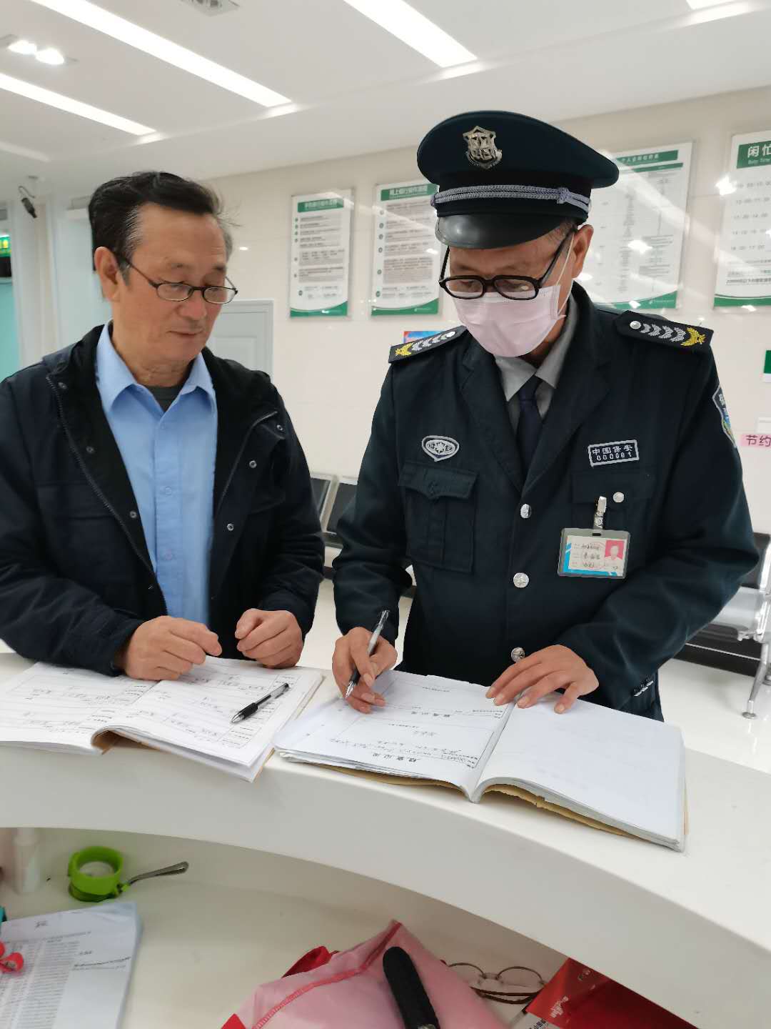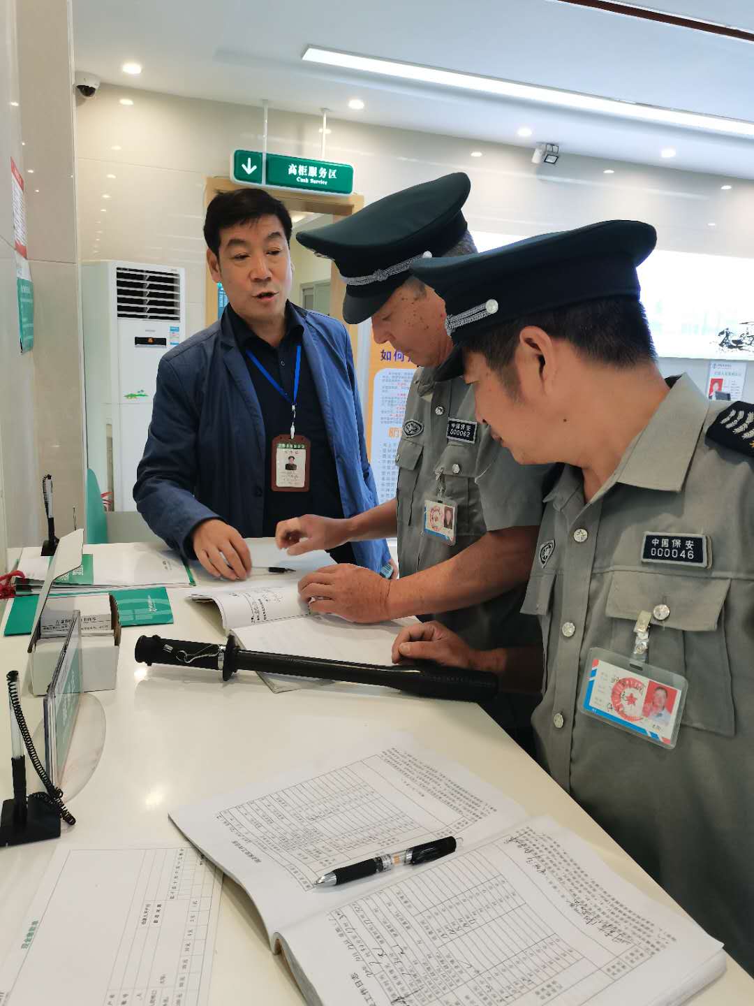 正阳县分公司20201012日至13日,对全县行政、事业、金融、学校等岗点的执勤保安着装、安全、服务、日志等内容进行了严格、细致的检查、督导。其中农行门卫执勤保安王继成、邮储银行营业厅保安柴益昌着装规范、工作认真负责、安全防护意思强。同时发现个别岗点、个别保安存在不按规定着装、工作日志填写不及时、不完整的现象。并当场指出,立即整改。